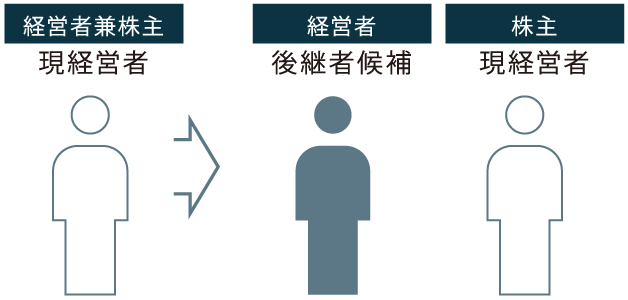 「現経営者を引き継いで、『後継者候補』が入り、当社がコンサルティングサポートを行いながら後継者育成を図ります。企業価値向上・人材育成等完了後は、完全に現経営者が事業から離れて、『後継者候補』が事業を引き継ぐか、社内承継を行うか、外部への株式譲渡を図ります。」